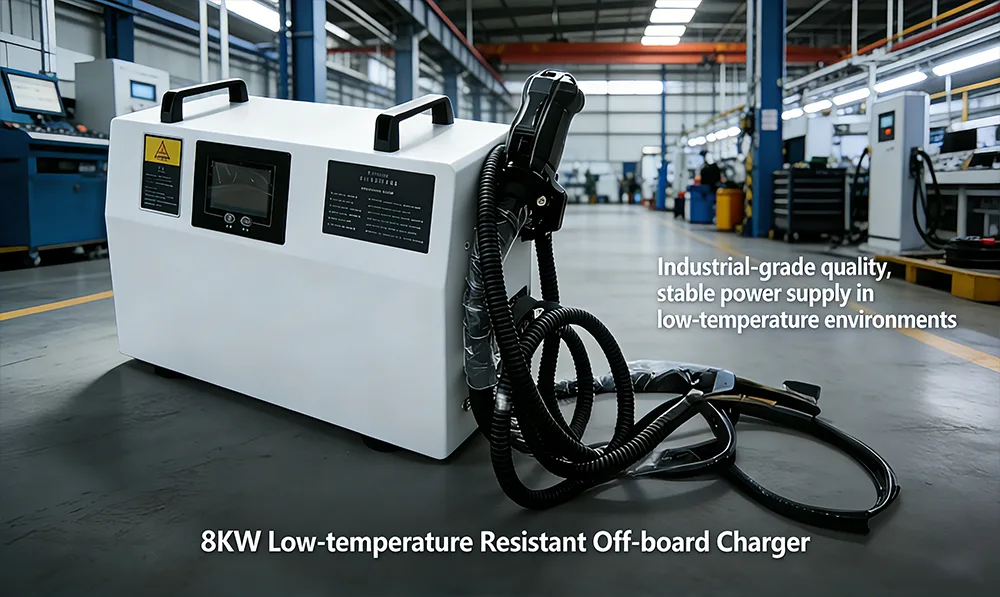 Den 8KW lavtemperaturbestandige off-board-oplader er en uafhængig opladningsenhed med høj effekt, der er specielt designet til miljøer med lav temperatur. Dens kernefunktion er at konvertere trefaset vekselstrøm til stabil jævnstrøm, der effektivt oplader strømbatterierne til industrielt udstyr såsom elektriske gaffeltrucks og stablere.